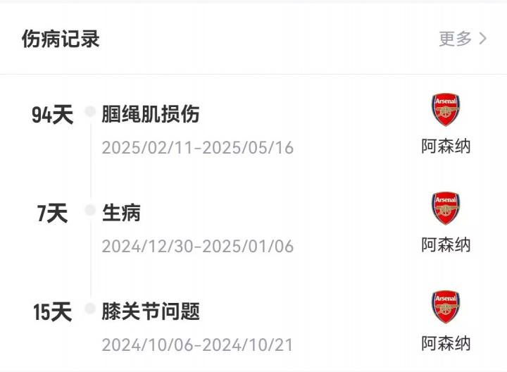 这是哈弗茨在2025年遭遇的第二次伤病,他今年2月在迪拜的一次训练营中遭遇腿筋撕裂,这让他缺席了英超和欧冠的18场比赛